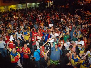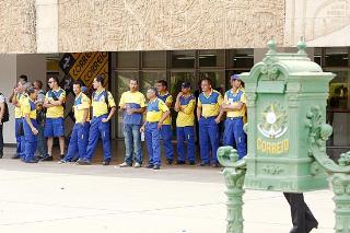 Funcionários dos Correios participam de assembleia na avenida Afonso Cavalcante, no Rio de Janeiro