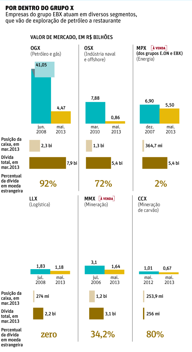 Ou seja, 20,8% dos investimentos em ações estão nas empresas de Eike. Esse porcentual pode ter sido mais alto, dada a queda das empresas X na Bolsa.